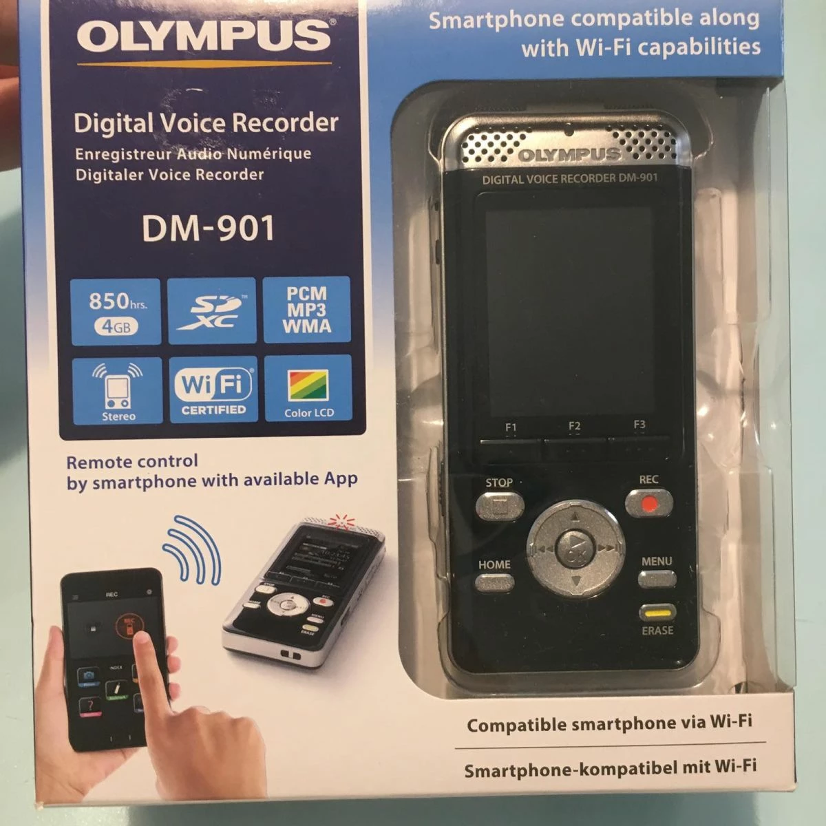 Αχρησιμοποίητο πλήρες δημοσιογραφικό μαγνητόφωνο OLYMPUS DM-901 σε άριστη κατάσταση. Το συγκεκριμένο μοντέλο ειναι το μοναδικό που συνδέεται μέσω Wi-Fi με smartphone σε δική του εφαρμογή. Έτσι μπορεί να ρυθμίζεται η λειτουργεία του, όπως έναρξη- παύση ηχογράφισης, εξ αποστάσεως από το κινητό και να αποθηκεύονται στο smartphone άμεσα οι ηχογραφήσεις. Τιμή 70 ευρώ.