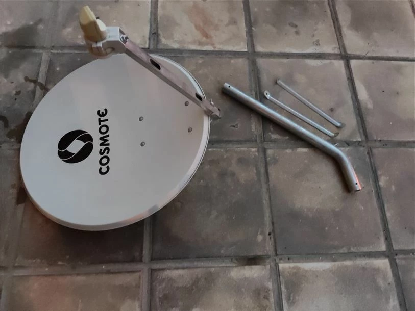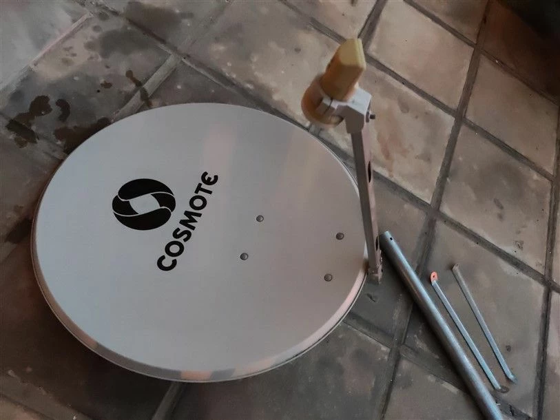 Δορυφορικό πιάτο cosmote με το lnb κομπλέ με τη βάση στήριξης