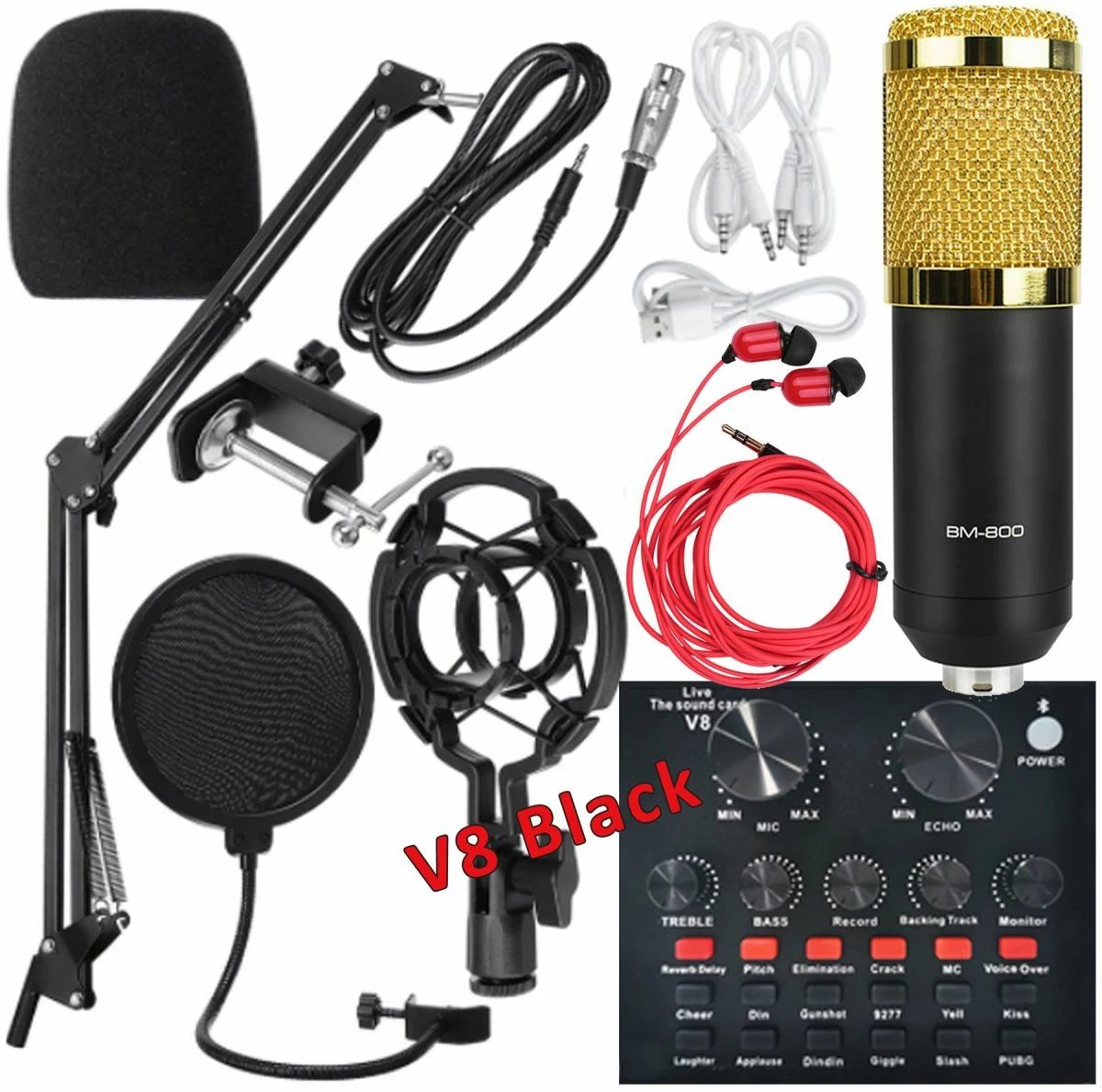 Vendora KIT Μικρόφωνο MB-800, με κάρτα ήχου V8, με Βάση, Shock Mount, Pop Filter και ακουστικά