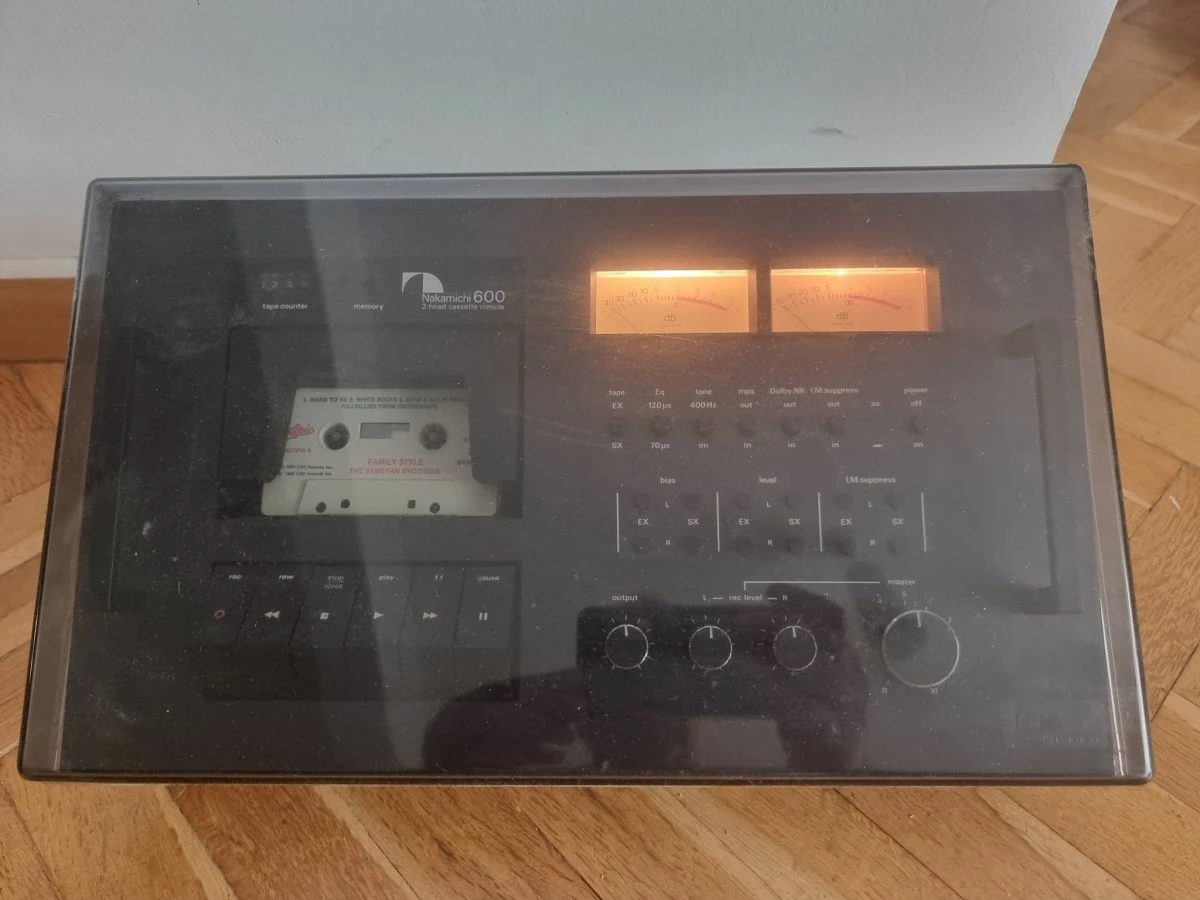 Ημιεπαγγελματικο κασσετοφωνο της Nakamichi, λειτουργιο και σε πολυ καλη οπτικη κατασταση, συμπεριλαμβανομενης και της προστατευτικης του ζελατινας. Το κορυφαιο της σειρας πριν τα επγγελματικα της μηχανηματα. Αυτο φαινεται και απο την rack εμφανιση του με τις λαβες.