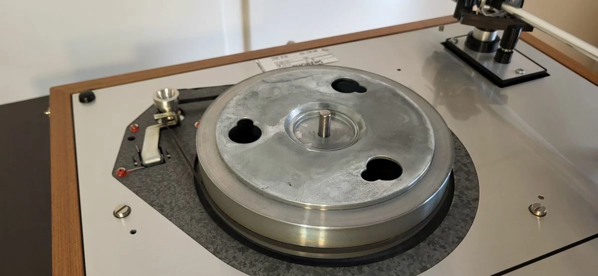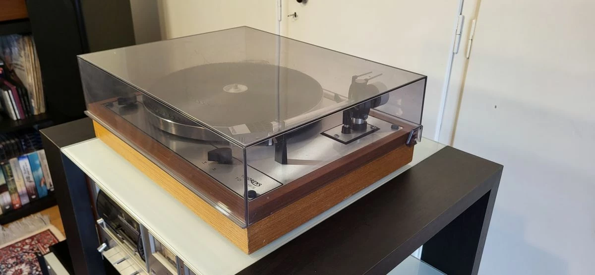 μαζί με κεφαλή Goldring G820. Δεν έχει σπασμένο καπάκι, έχει αλουμινένιο υποπλατό και ράουλο του μοτέρ.