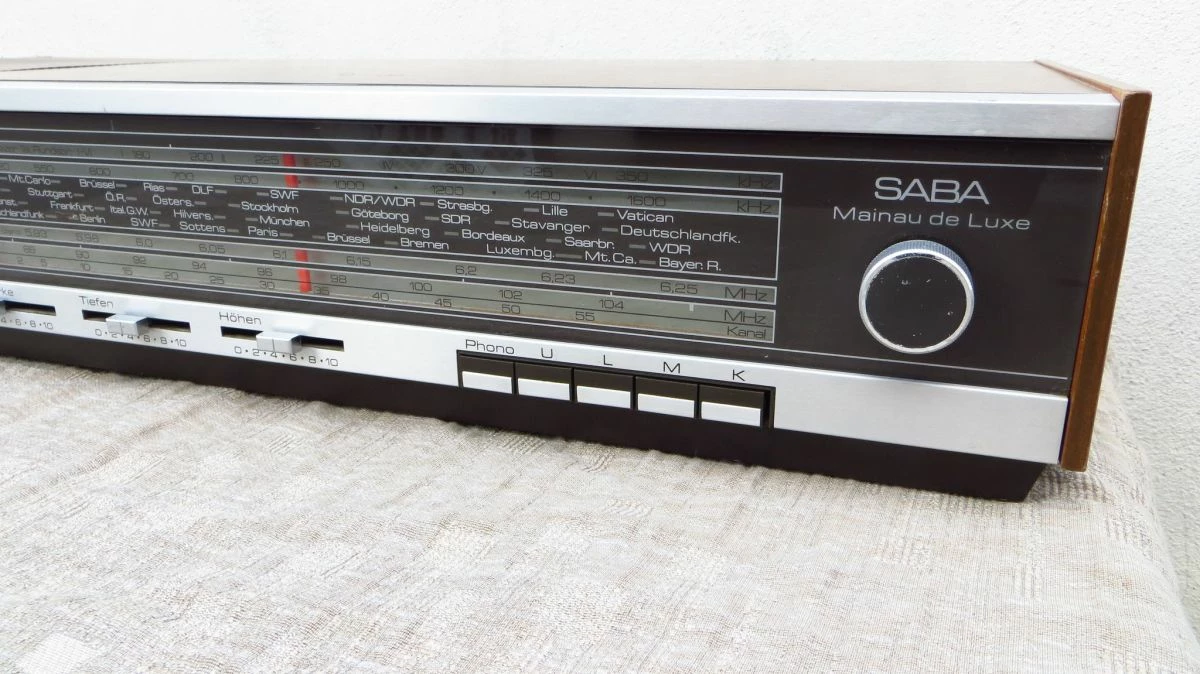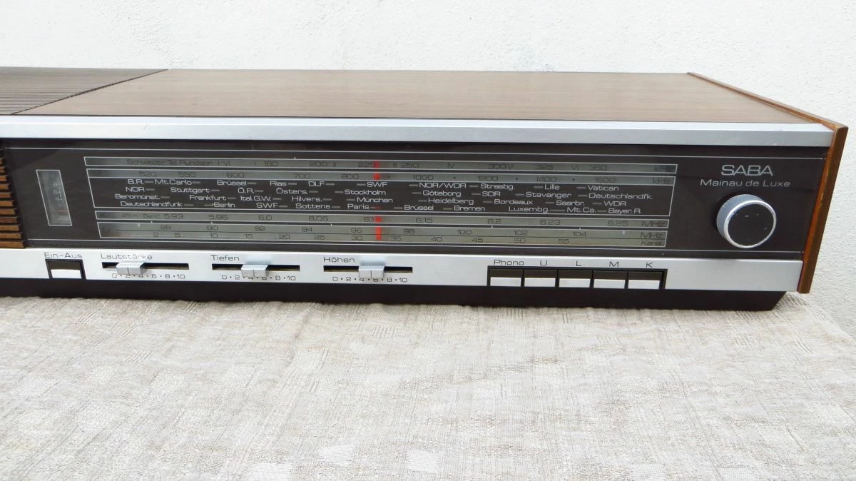SABA Mainau de luxe. Made in Germany. Πλήρες λειτουργικό. Με πολύ δυνατό και καθαρό ήχο. Πολύ καλή και δυνατή σήμα! Σε πάρα πολύ καλή κατάσταση όπως δείχνουν οι φωτογραφίες!