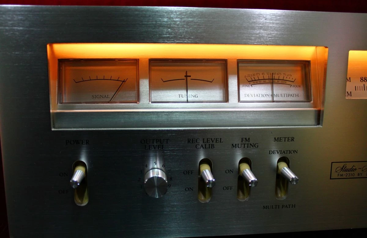 TUNER FISHER FT – 2310. Αριστη κατασταση. Καθαρος. Αριστη ληψη ραδιοφωνικων σταθμων. Τρια ποτενσιομετρα -TUNING/SIGNAL/DEVIATION-MULTIPATH,με το τριτο,να τρεχει ασταματητα στο ρυθμο της μουσικης,αλλα μπορουμε και να τον απενεργοποιησουμε.Αρκετα σπανιο,και ποιοτικο μηχανημα. Στο καλώδιο τροφοδοσιας,υπαρχει ενσωματωμενη ασφαλεια(για την προστασια),σε περιπτωση αποτομης αλλαγης τασης(διακοπη ρευματος).