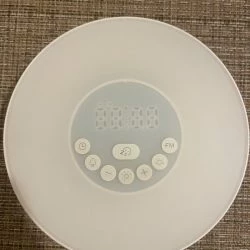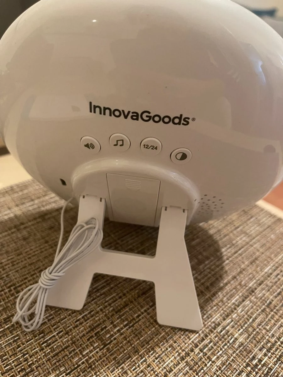 Ραδιόφωνο-ηχείο-ξυπνητήρι που λειτουργεί με ρεύμα. Διαθέτει εναλλασσόμενα χρώματα φωτισμού και διαφορετικές εντάσεις εξίσου. Σε άριστη κατάσταση.